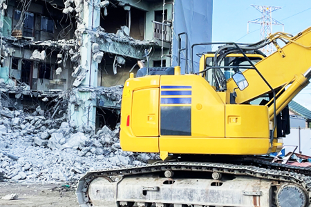 一般住宅から大型物件まで、あらゆる建物の解体工事を行っています。工事にはそれぞれの建物構造に合った重機を使用しています。
